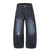 - Deep indigo wash with subtle fade and wrinkle texture