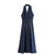 - Navy blue tie waist halter neck flared denim mididress