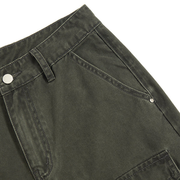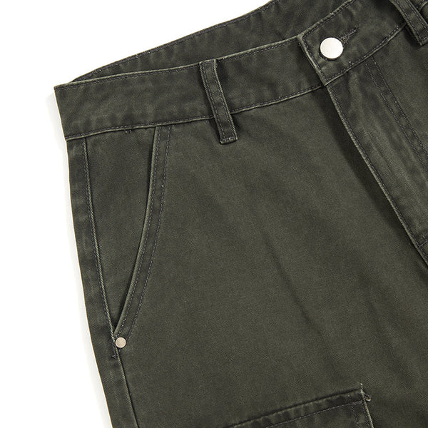 Loose Fit Pleated Knee Cargo Trousers