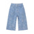 - Densely patterned lace-cut florals spanning the complete denim silhouette