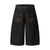 - Wide leg selvedge shorts – hand-embroidered bermuda fit