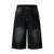 - Black leopard print denim bermuda shorts, relaxed fit