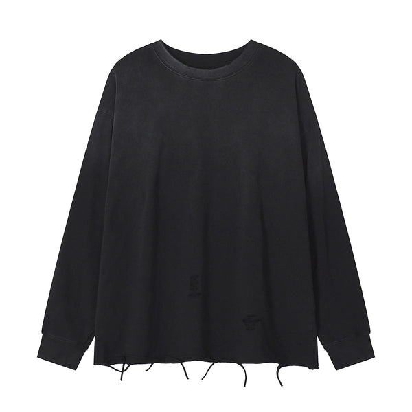 - Men's distressed long sleeves top �black ripped cotton sweatshirt
