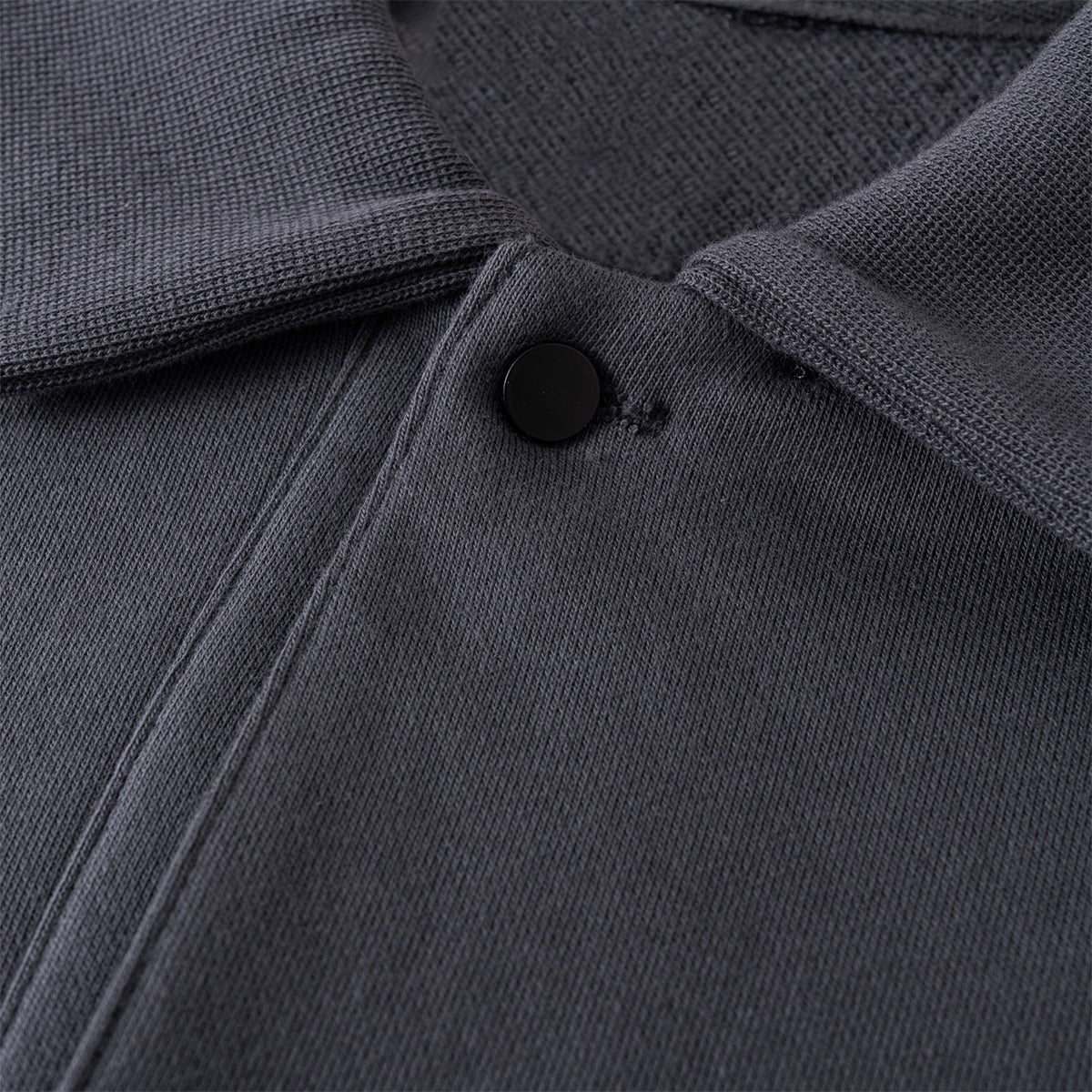 - Henley-style placket with button closure