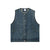 - Vintage-style crew neck button-front denim vest